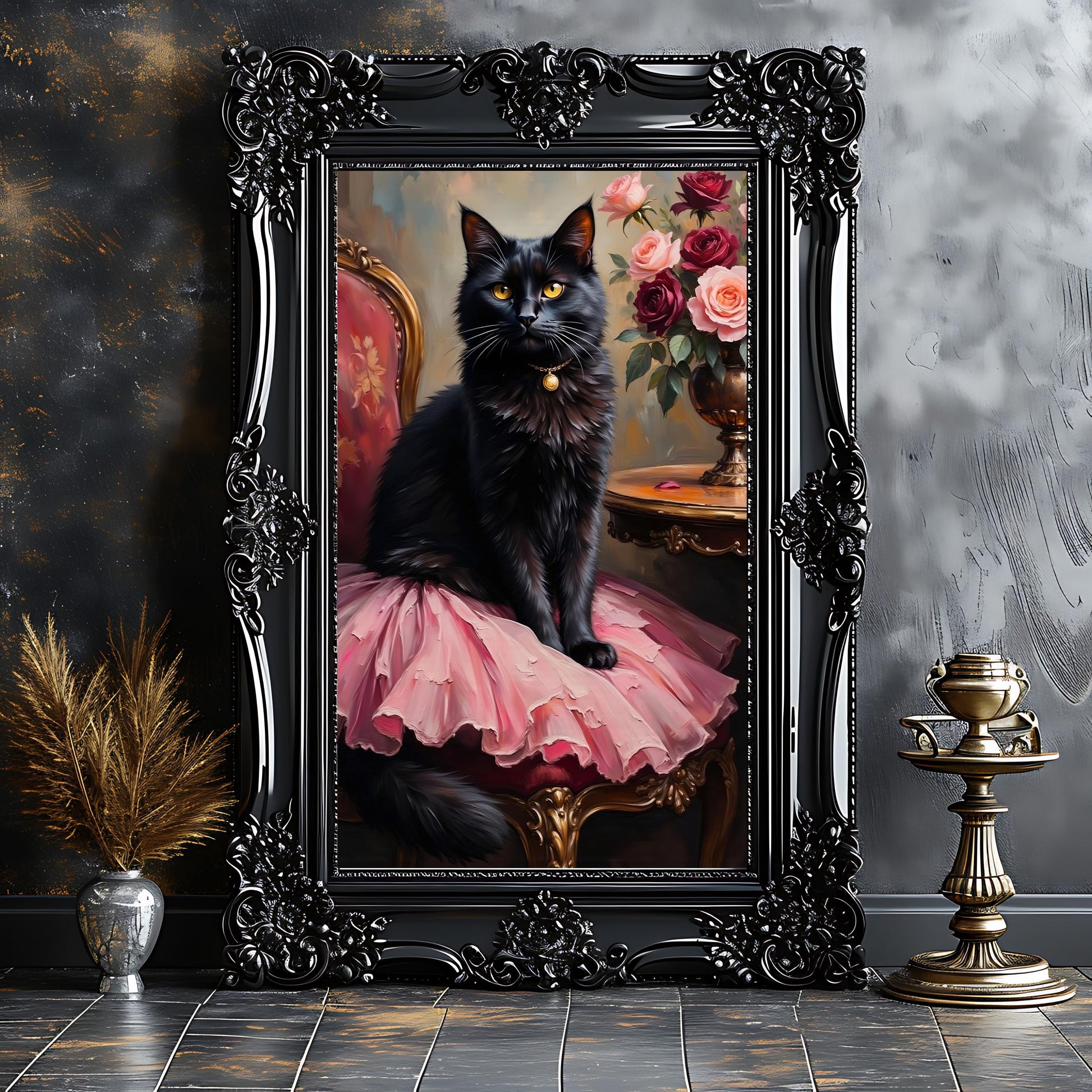 Ballerina Cat in a Pink Tutu Art Print: Victorian Gothic Home Decor
