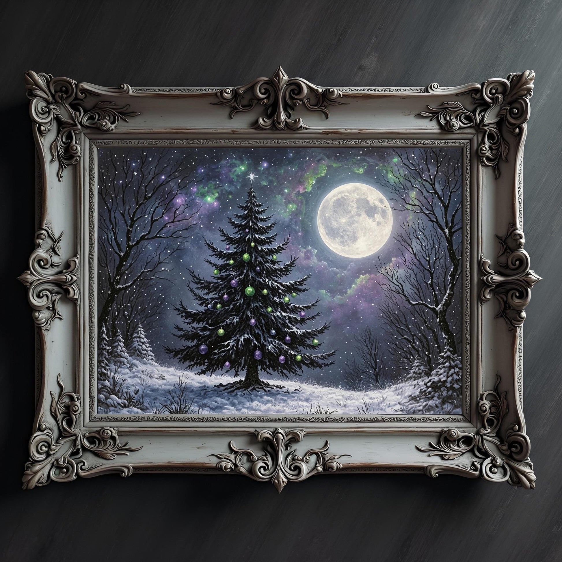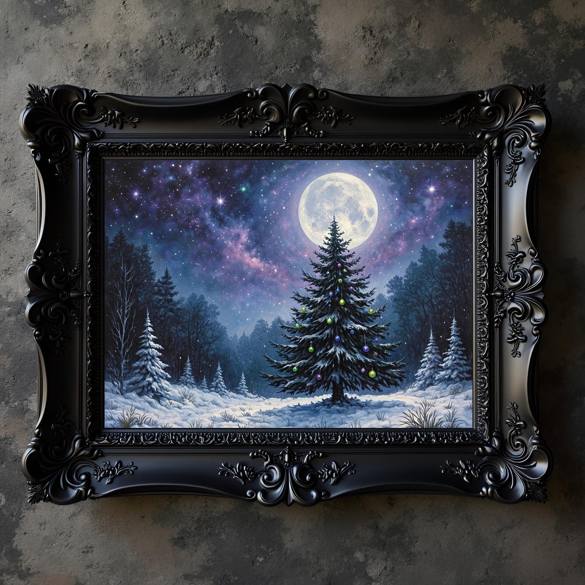 Gothic Full Moon Christmas Tree Print: Celestial Yule, Holiday Decor