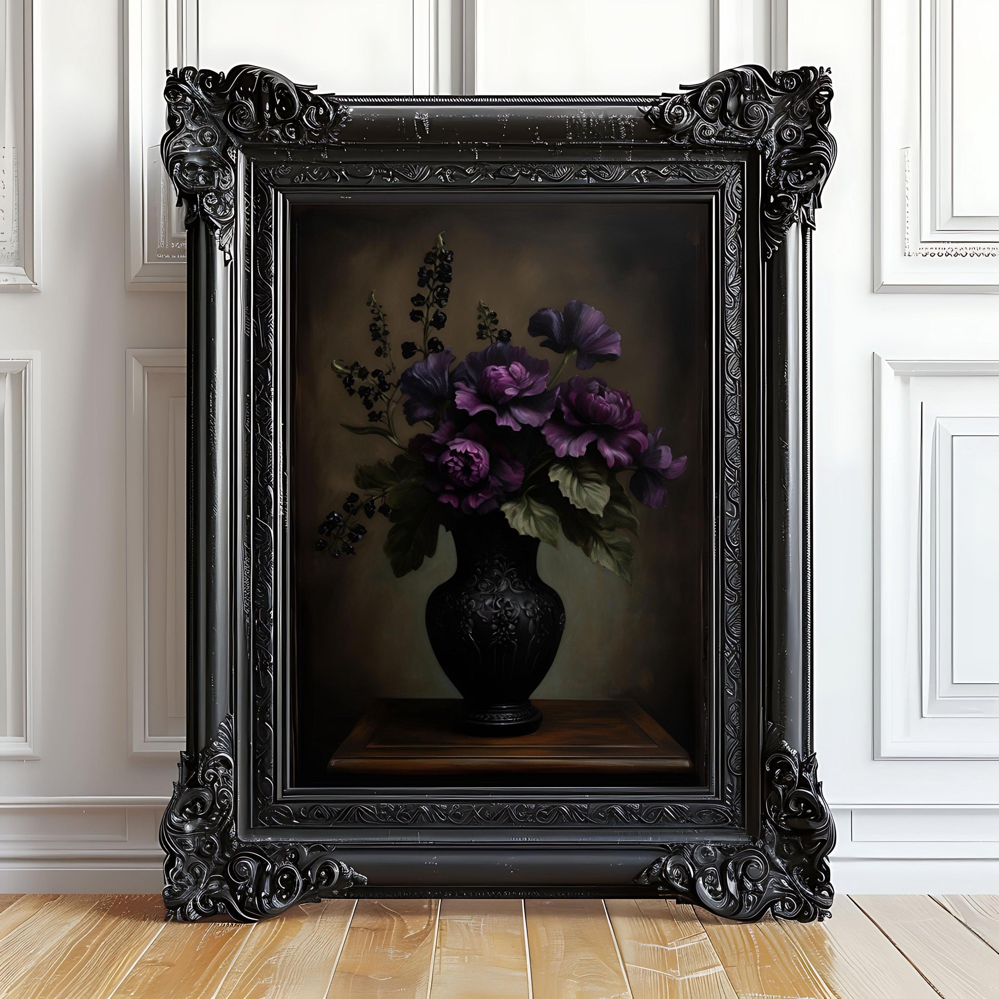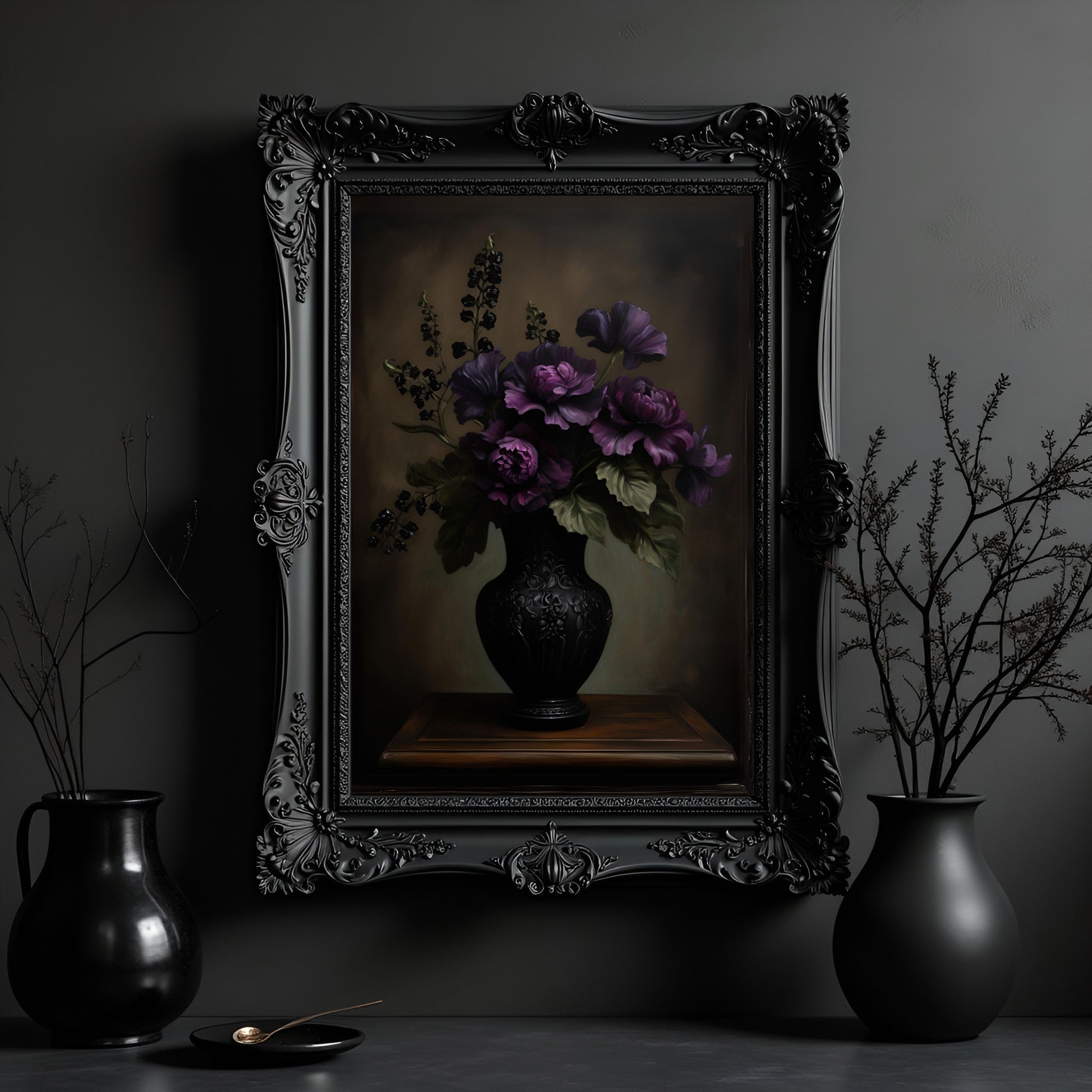 Purple Peonies Floral Print: Dark Victorian Botanical Wall Art