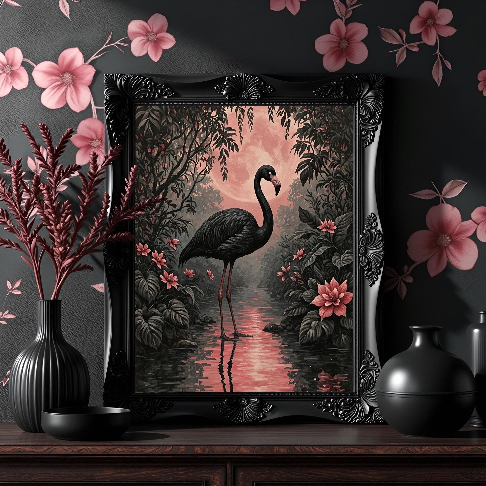 Black Flamingo Print: Vintage Style Tropical Wall Art