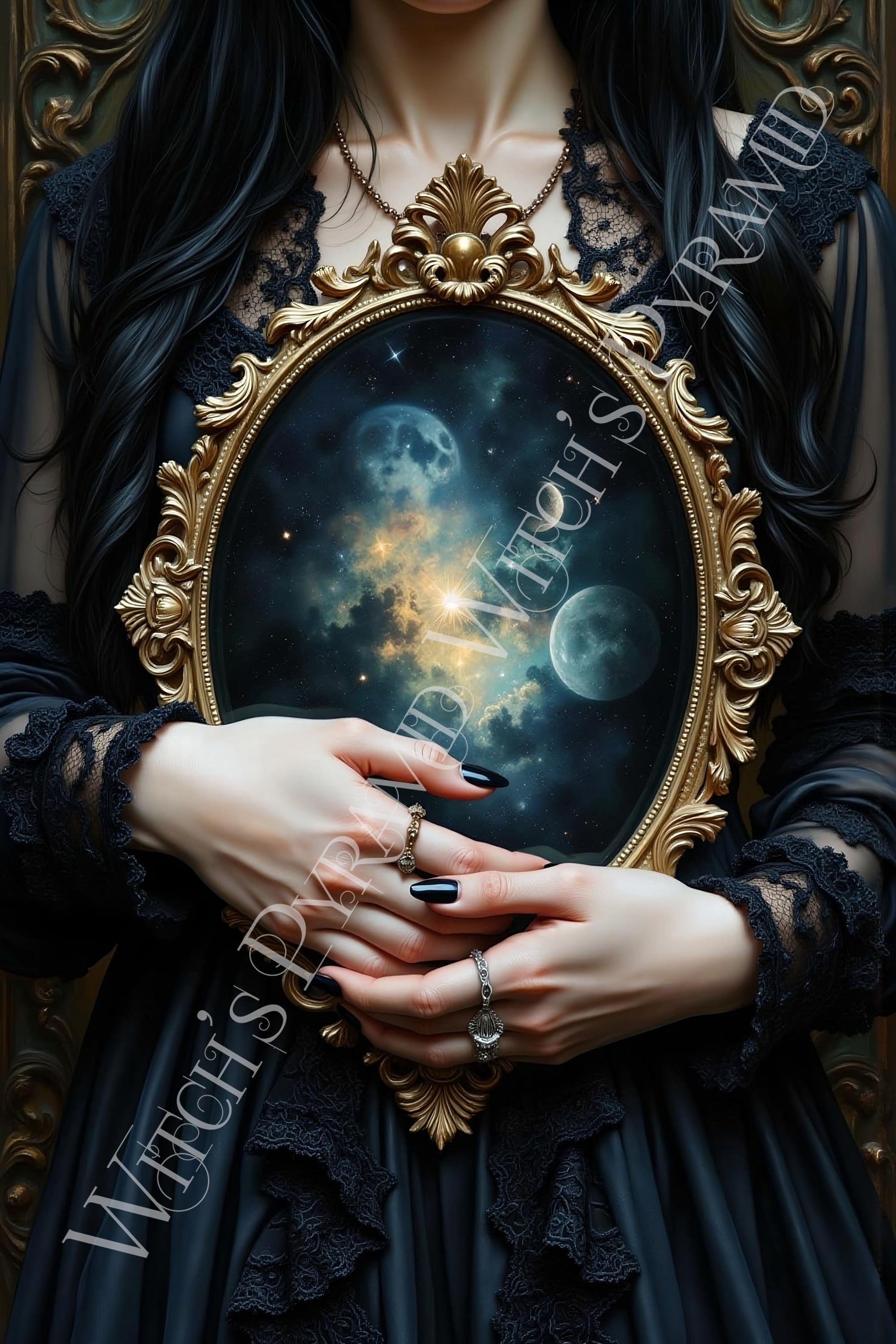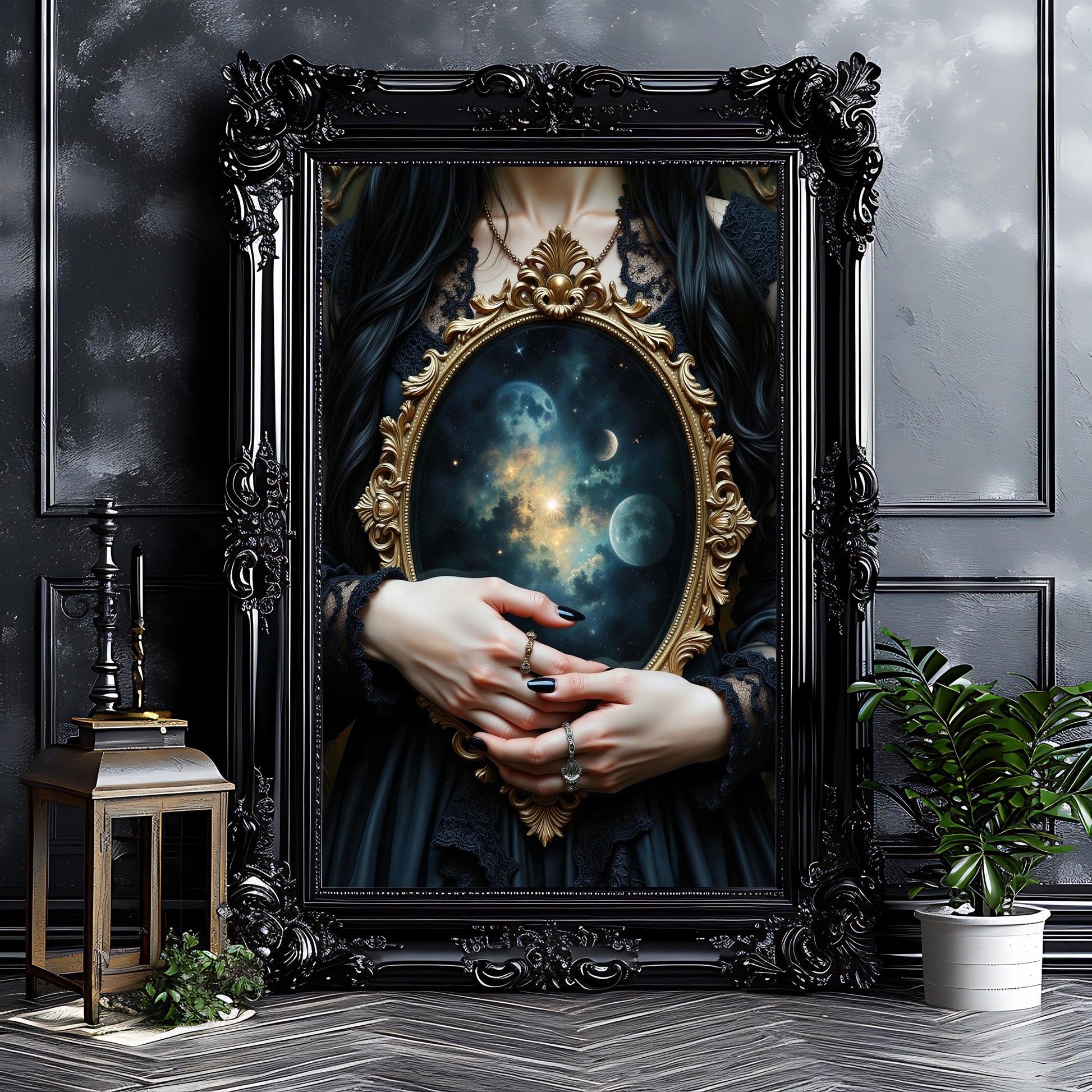 Cosmic Reflections Art Print: Dark Academia Celestial Gothic Decor